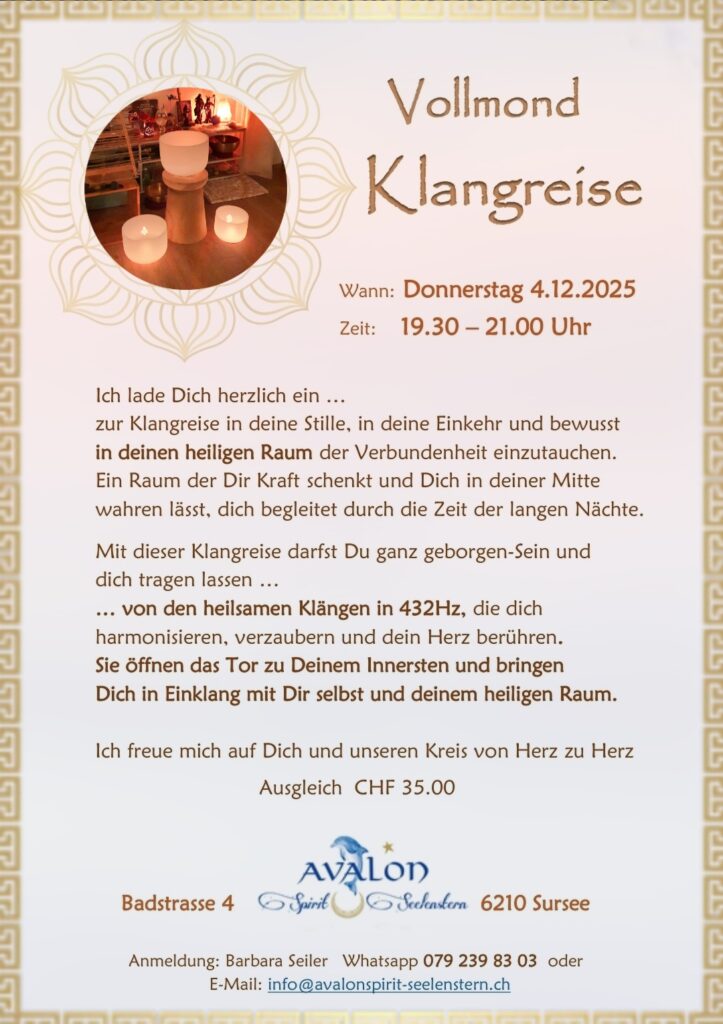zur Vollmond *** Klangreise *** am Donnerstag 04.12.2025 19.30 – 21.00 Uhr