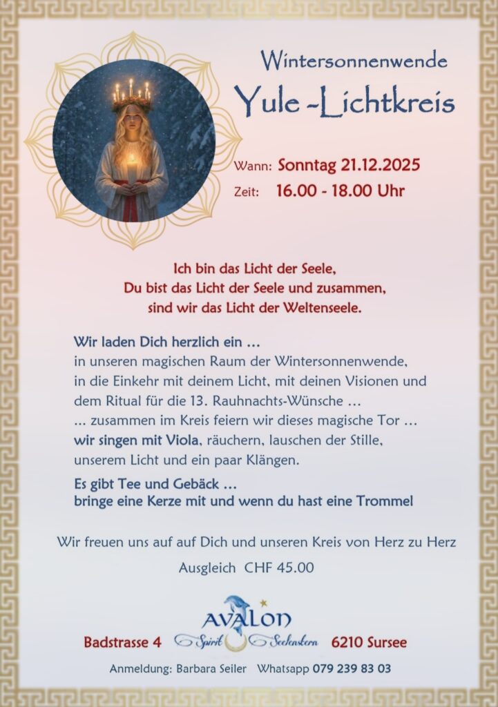 WhatsApp Telefon: 079 239 83 03 oderE-Mail: info@avalonspirit-seelenstern.ch